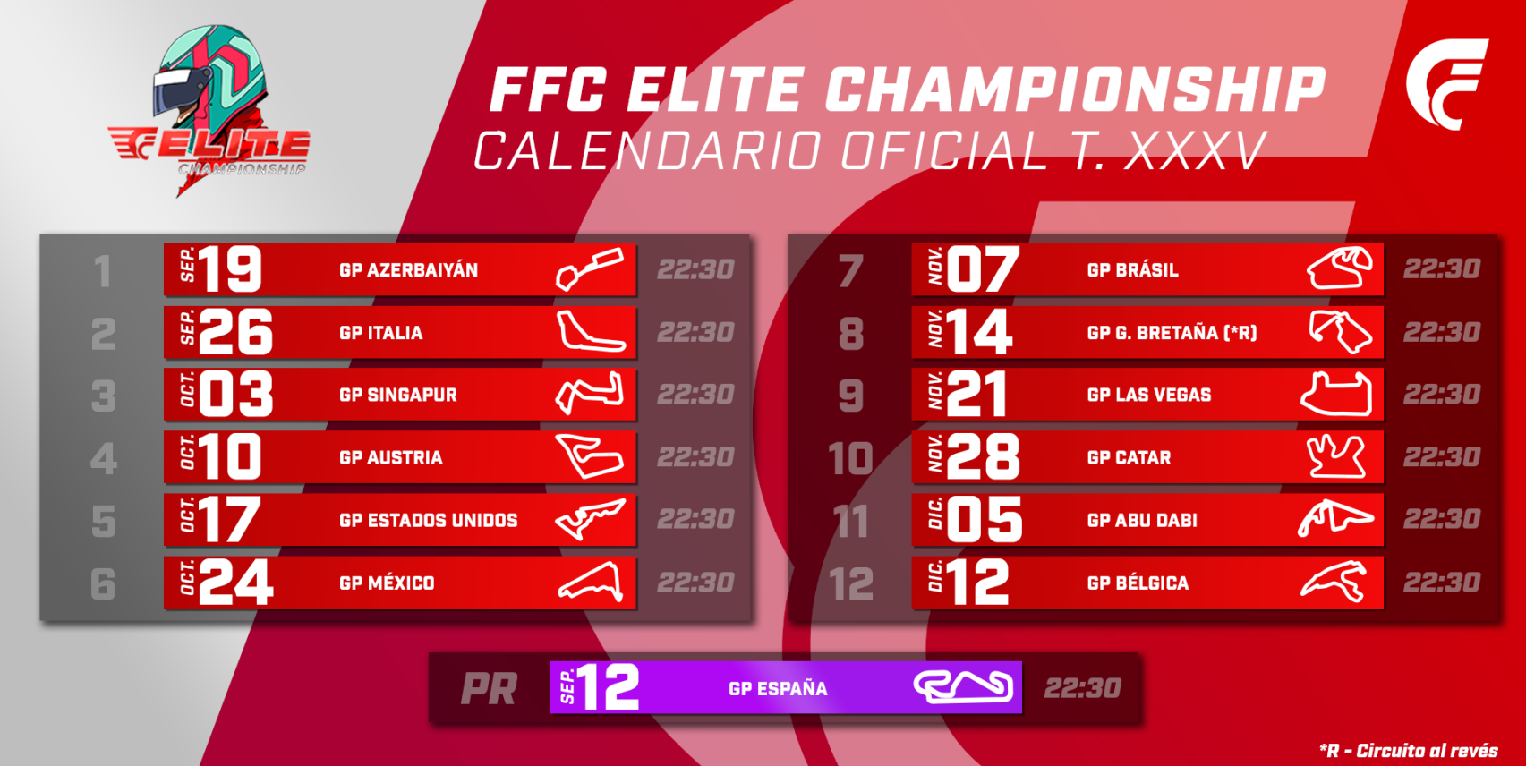 Las carreras se disputan a las 22:30 horas, huso horario de Madrid (España).