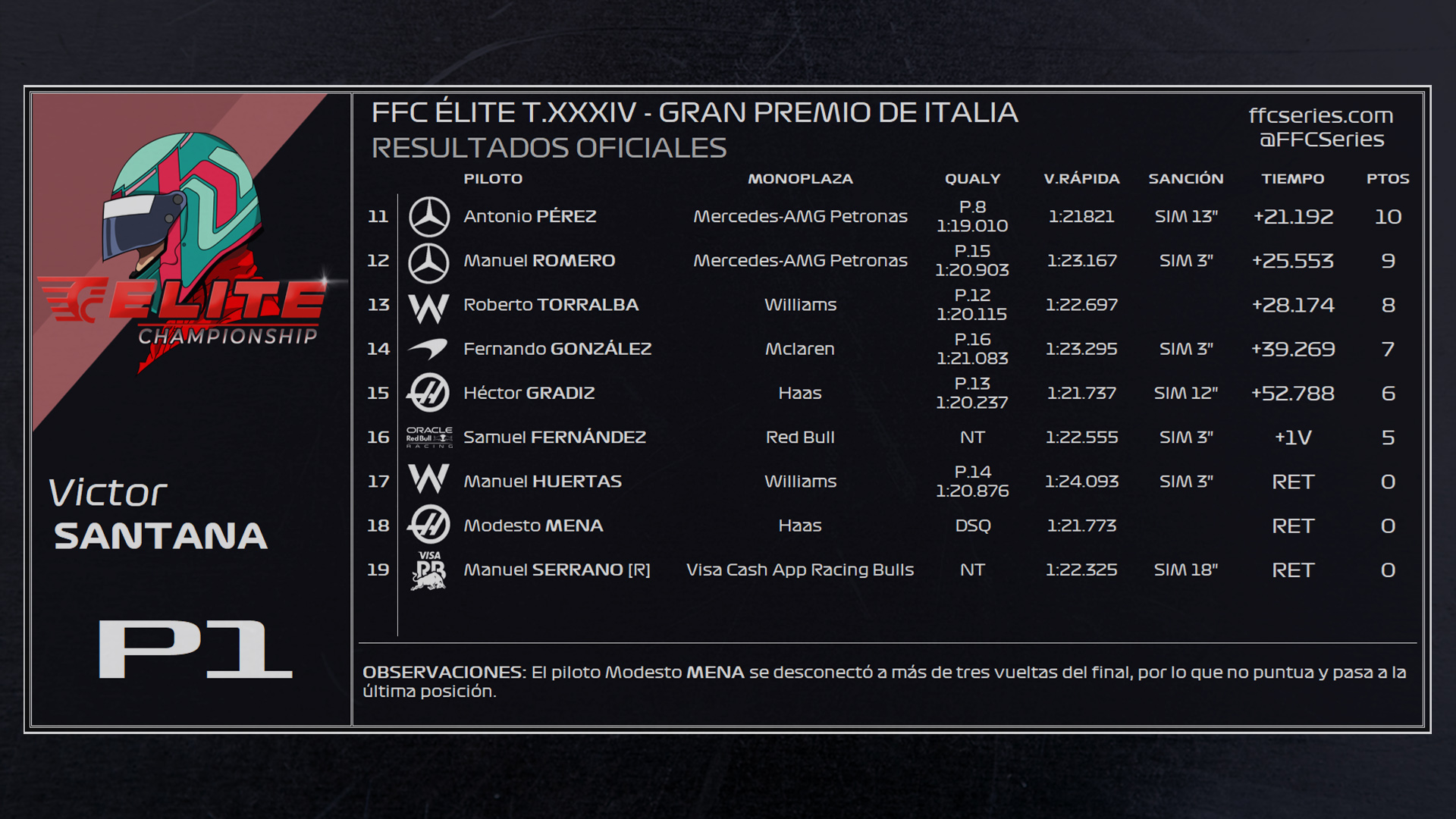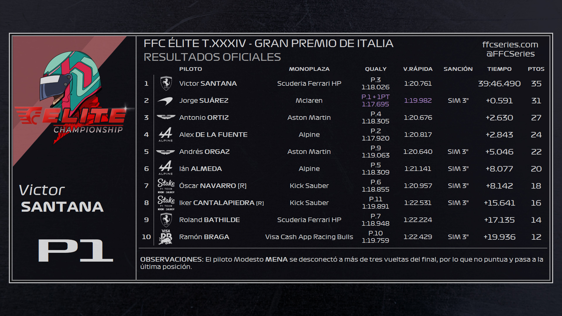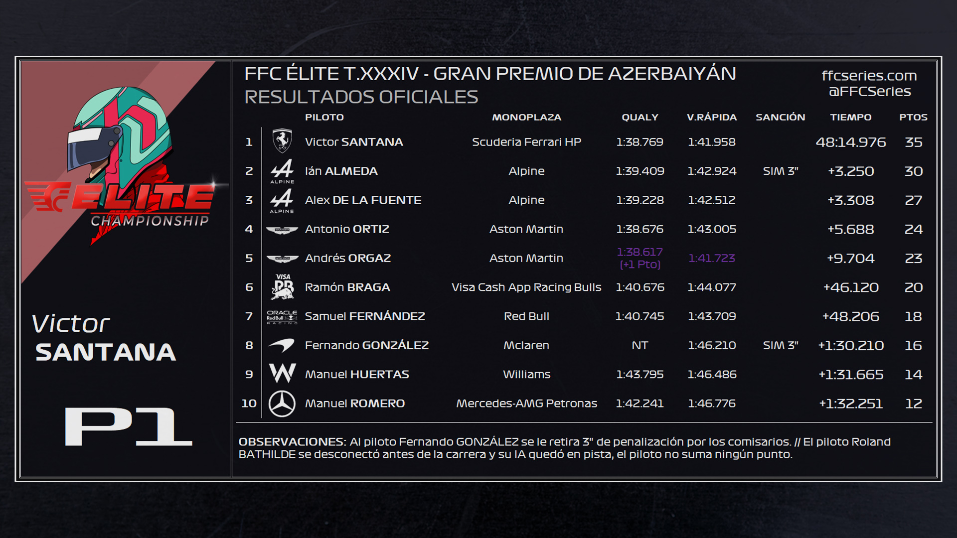 RESULTADOS TEMPORADA 34 FFC ÉLITE