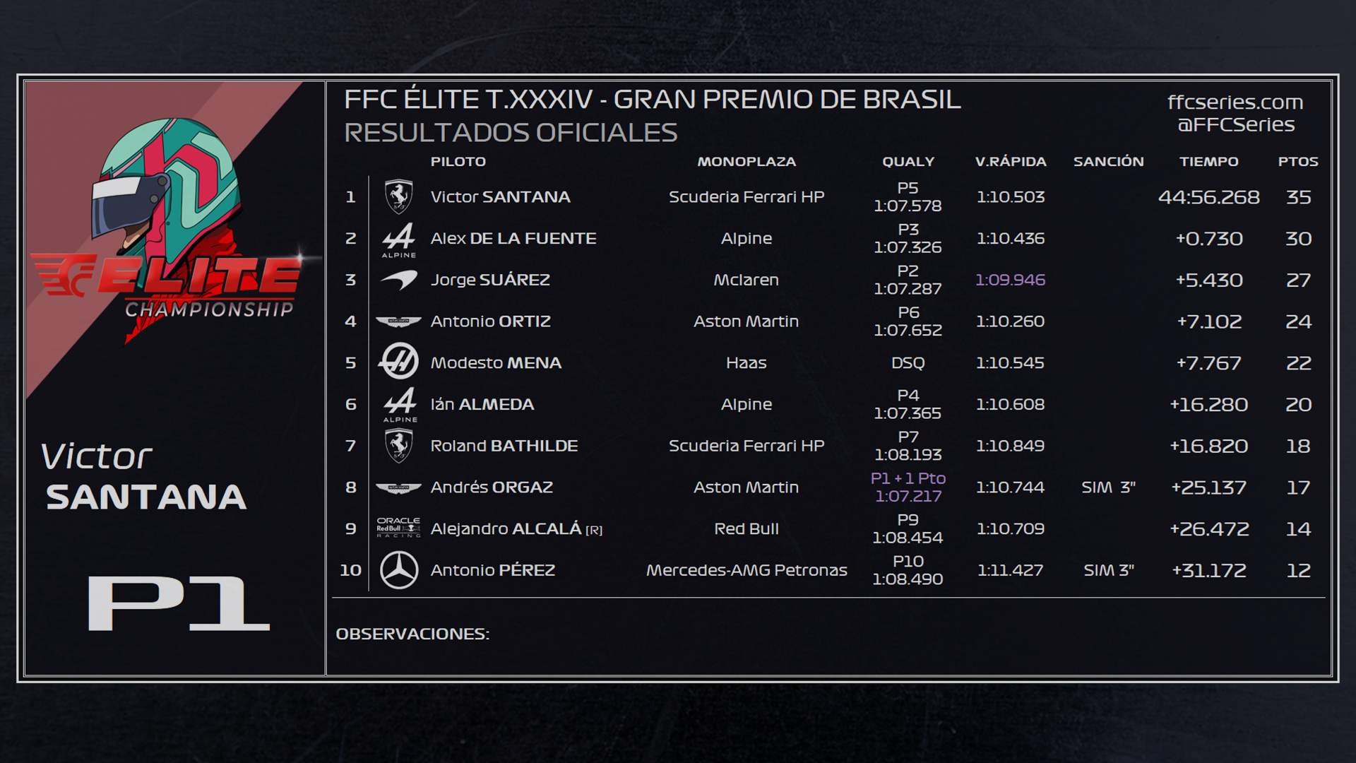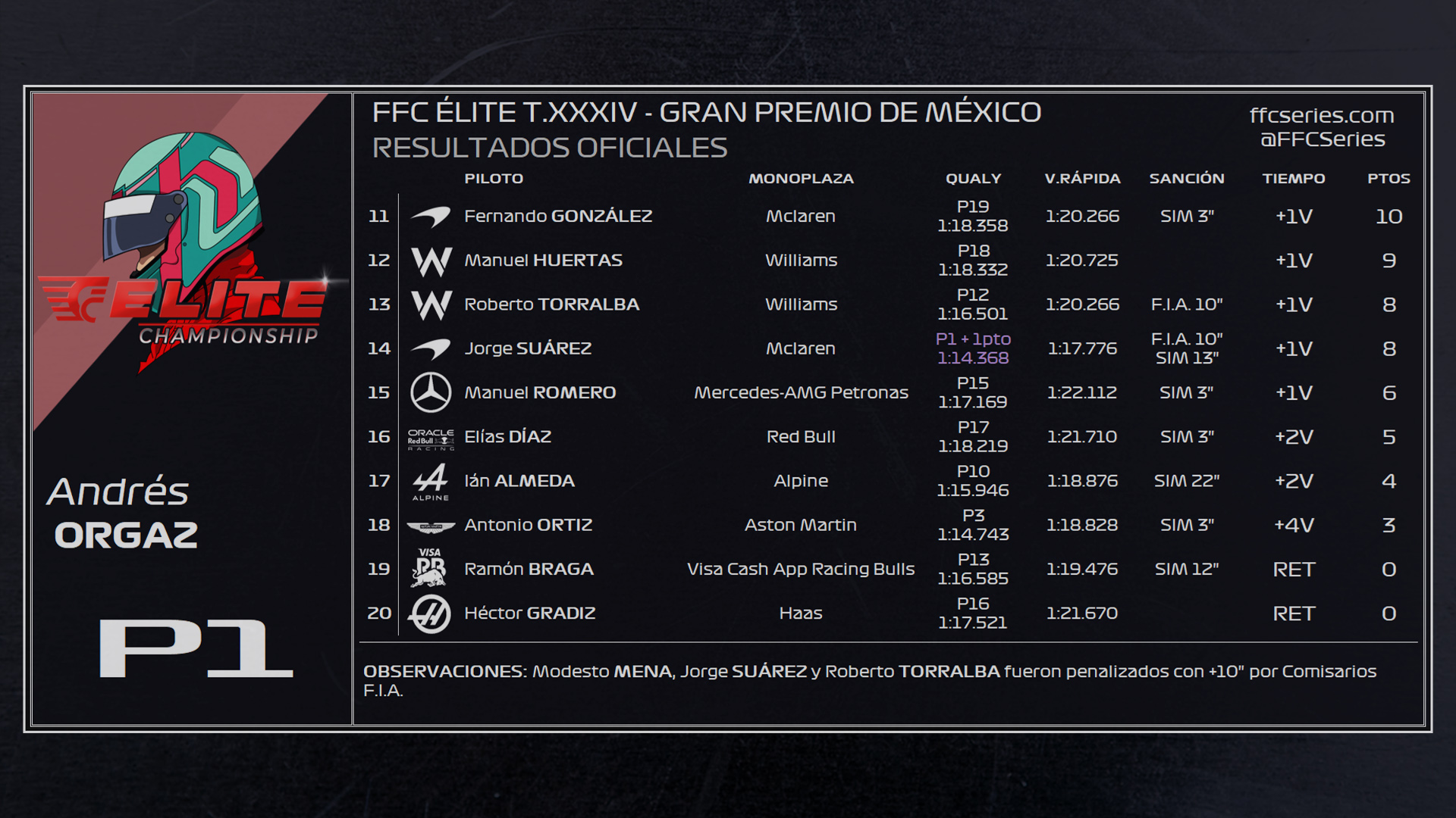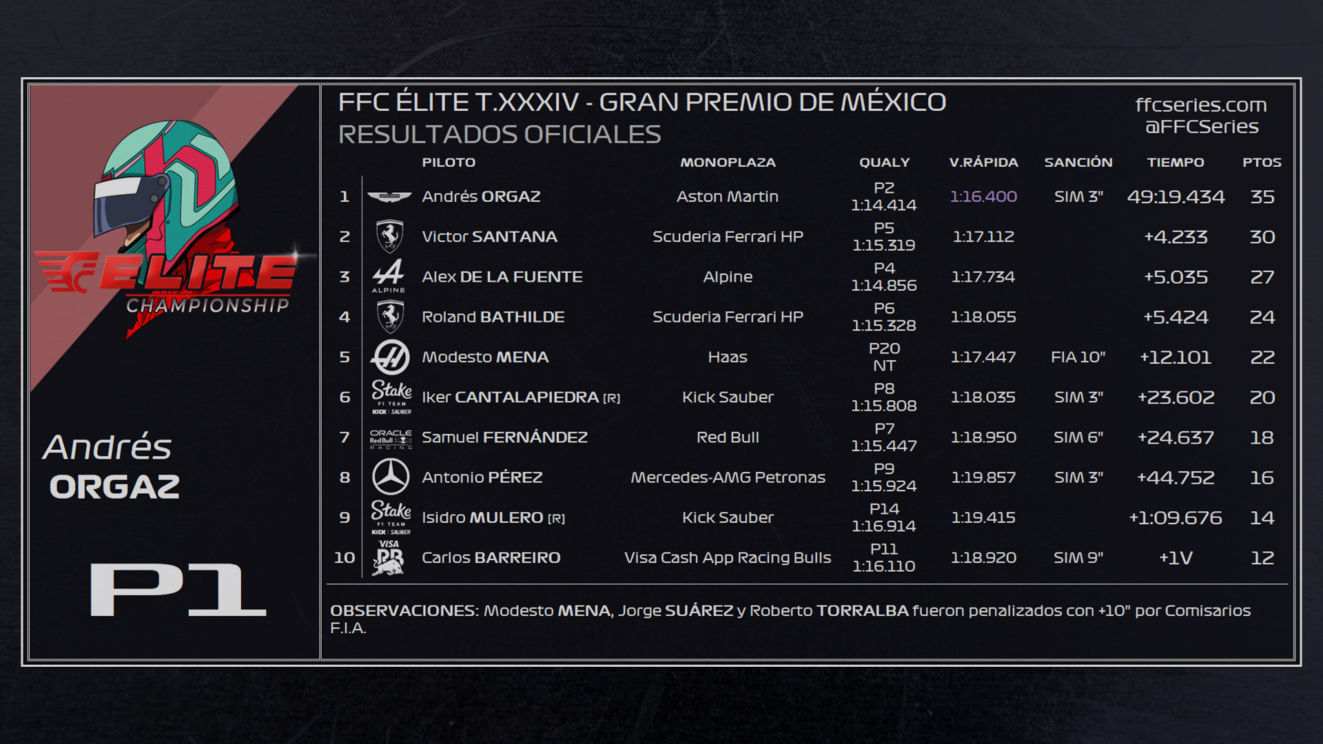 RESULTADOS TEMPORADA 34 FFC ÉLITE