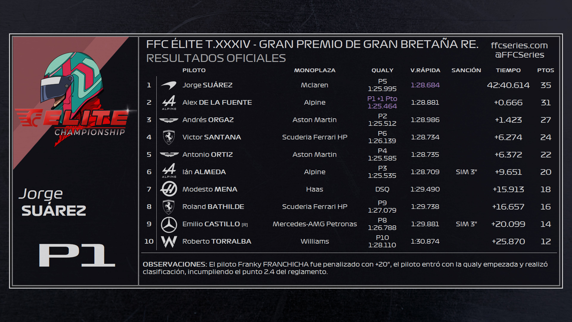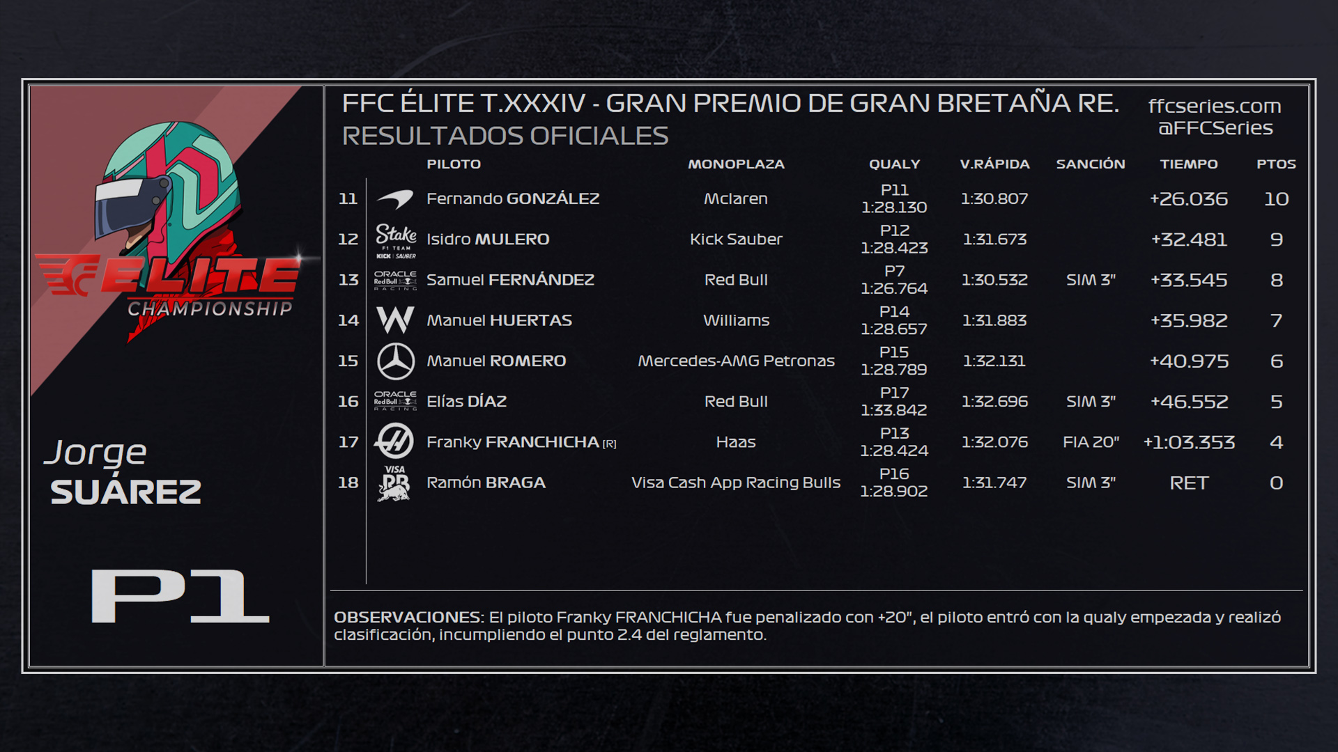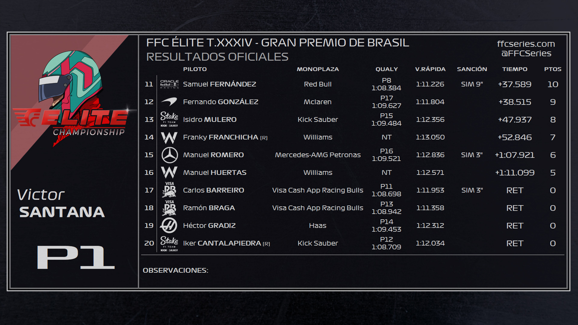 RESULTADOS TEMPORADA 34 FFC ÉLITE