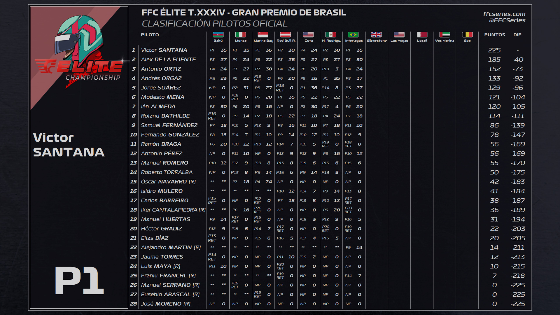 la Organización de FFC da por oficiales los siguientes resultados del campeonato FFC Élite en Brasil.