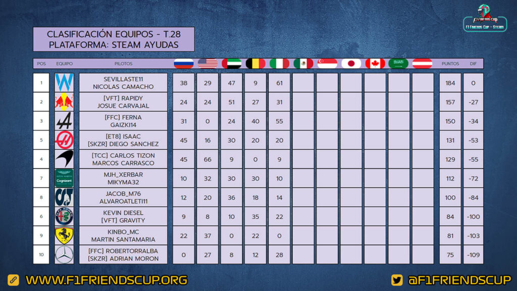 FÓRMULA 1®, F1®, FORMULA ONE® y el logotipo F1 son marcas registradas de Formula One Licensing BV. Todos los derechos reservados. Este sitio no está afiliado ni respaldado por la Fórmula 1.